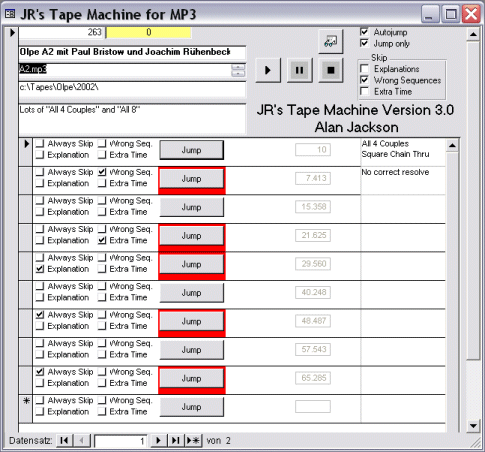 Once the tapes are recorded in MP3 it is easy to define the zero marks. But additionally these marks are stored, so they exist again the next time you play this tip. In the newest